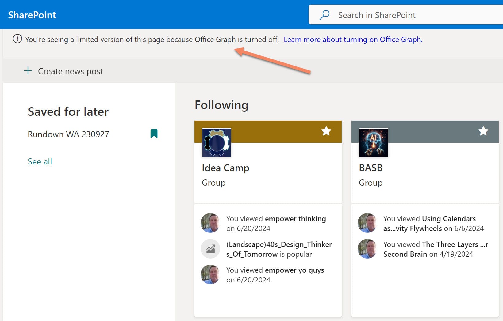 It's those IT services that concern me--in a good way. I've uploaded and refined more than a terabyte of high quality academic material onto the campus SharePoint services. I can search that material with standard finder tools as well as with Microsoft Copilot's large language library. But since the Office Graph has not been enabled for our information services, it's unusual for anyone to serendipitously discover what I'm teaching. And that means very little cross-modular collaboration between lecturers and researchers.